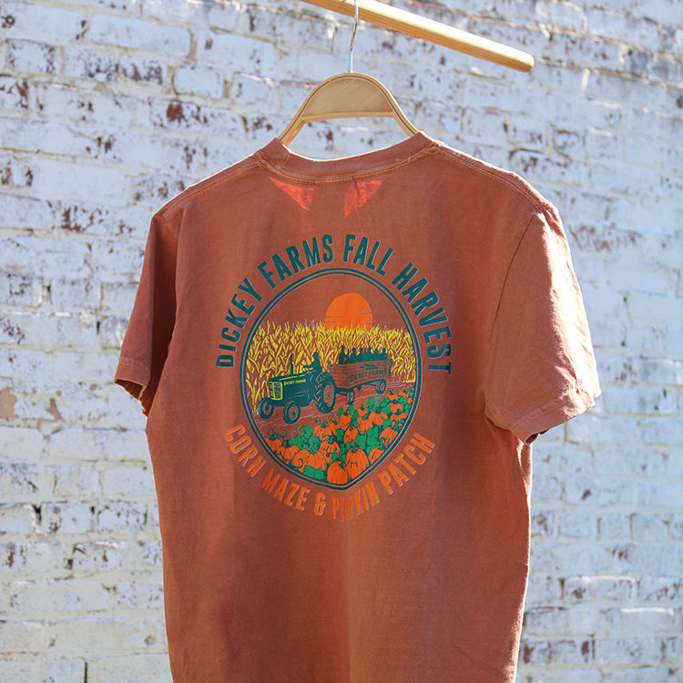 Celebrate fall season with our Fall Harvest shirts! Made from soft, breathable cotton, this shirt is perfect for fall bonfires, fall fun, or even picking pumpkins at our farm.