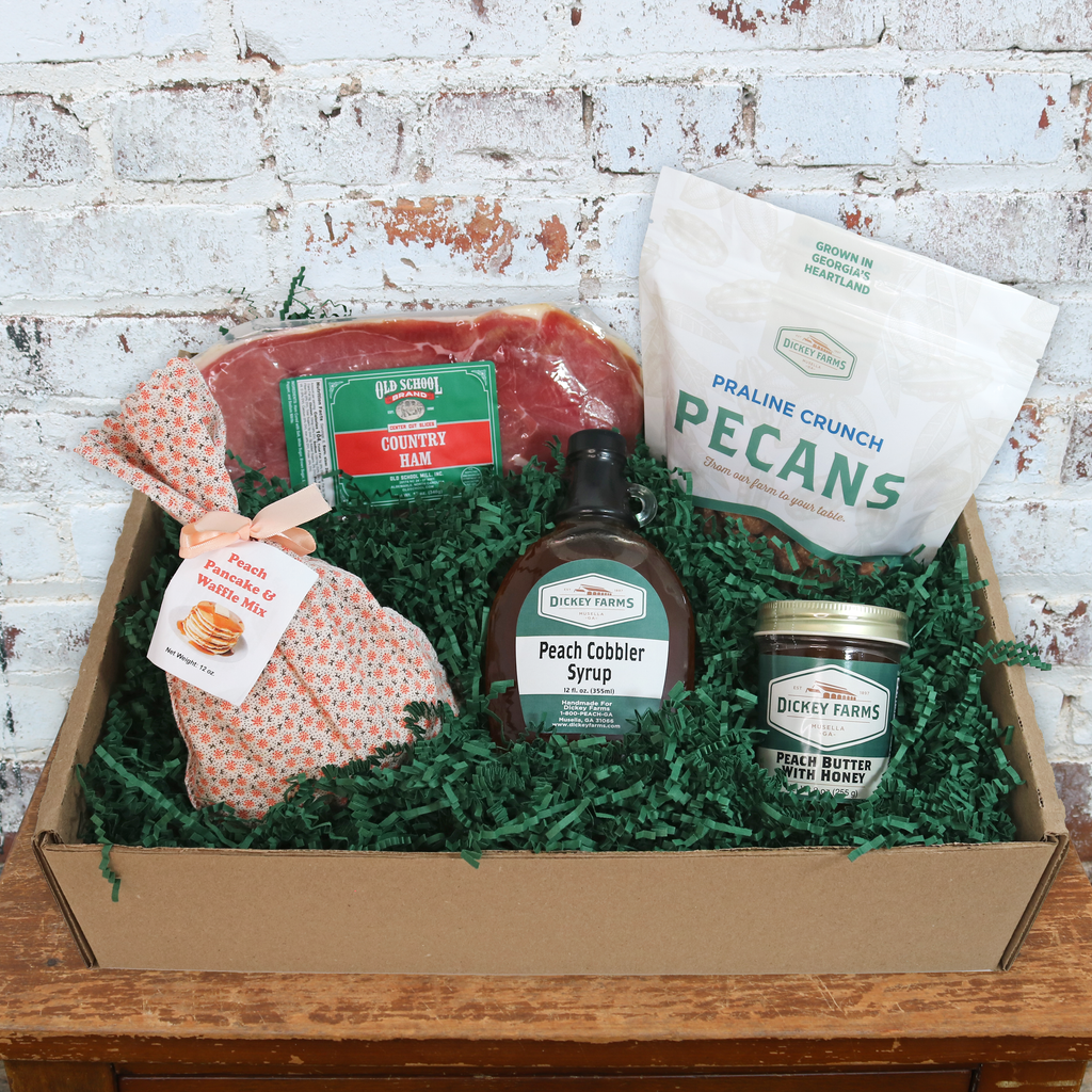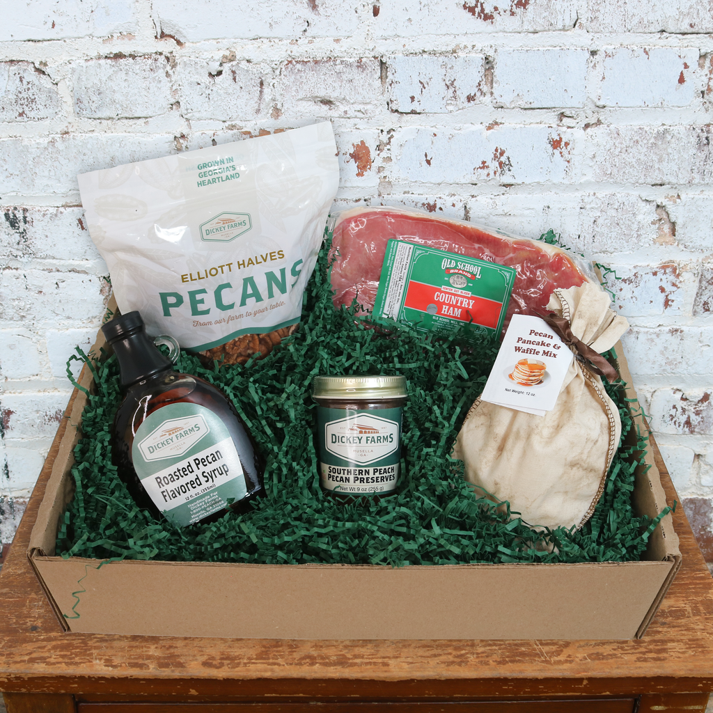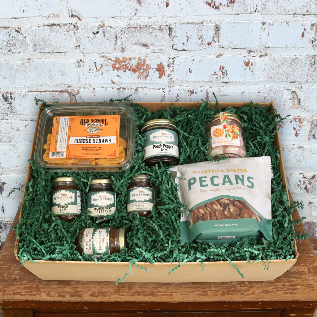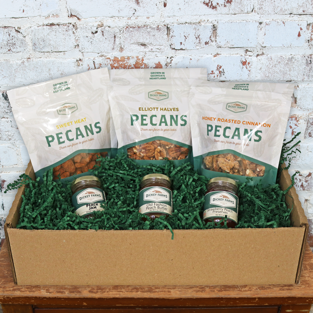 Dickey Farms has a basket for anyone's favorite treats, carefully curated with a variety of our most popular items, including our Georgia peach and pecan gifts. Whether you are shopping for one person or a whole family, we have your back with our unique Georgia gifts. Browse our Georgia gift baskets online and place an order today to have it conveniently shipped to your door!