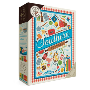 Puzzle lovers know that the best way to enhance an afternoon of puzzling is with plates full of the perfect snacks. And what could possibly be more delicious than a spread of home-cooked Southern food? Lucie Rice’s Southern Staples puzzle design showcases the basic ingredients every Southern chef keeps on hand for crafting the dishes and desserts that bring people back for seconds and thirds.