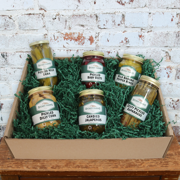 This box of hand-crafted small batch pickles gives you the same taste as your Grandmother's pickled vegetables always did. We use produce picked at the peak of the season with fresh herbs, whole spices and quality vinegars to create the perfect jar of pickles. Perfect compliment to any meal!